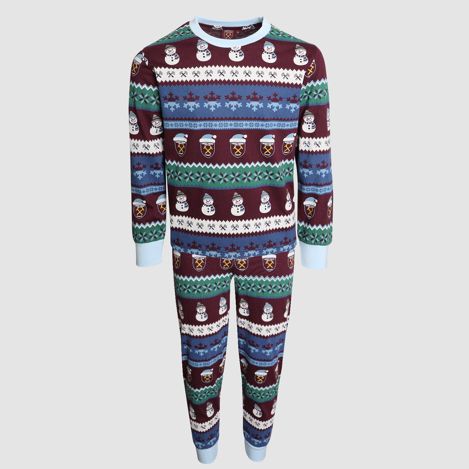 Get your little Hammers ready for the festive season with these Junior Christmas Family Pyjamas. The set includes a long-sleeve top and matching bottoms with a drawstring waist for a snug and comfortable fit. Made from 100% cotton, these pyjamas provide softness and breathability perfect for cozy Christmas mornings. Pair them with Adults and Women’s Christmas family pyjamas to complete the full family set.