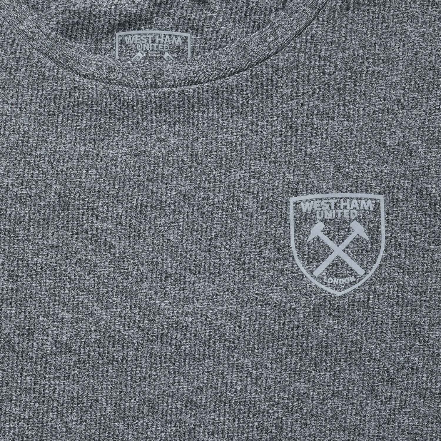 Stay active while showing your team pride. This grey performance t-shirt features a subtle West Ham United crest on the front left chest and bold West Ham United text across the back. Made from a lightweight, stretchy fabric blend for comfort and flexibility.