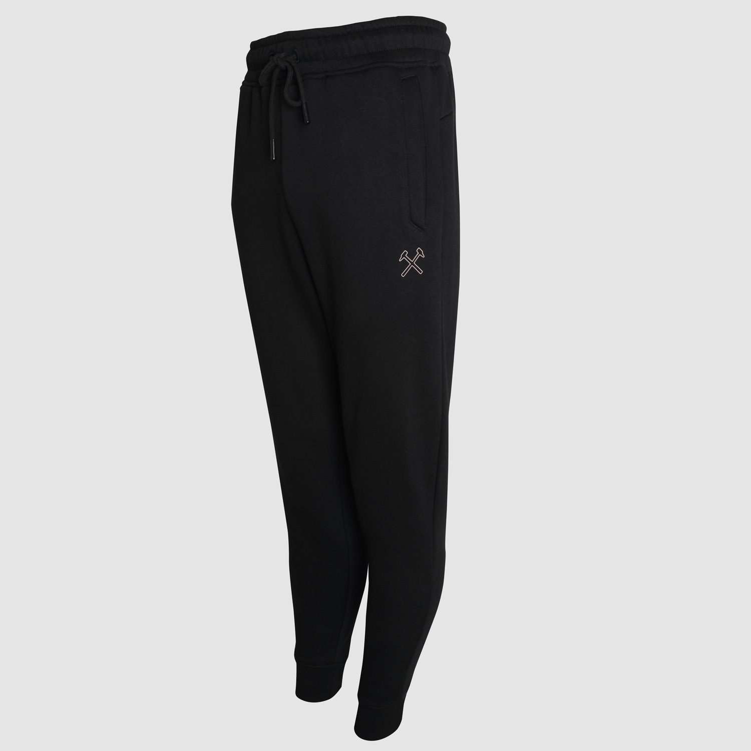 Complete your casual look with these black West Ham United jog pants from the Hammers Collection. Made from soft, comfortable fabric, they feature an elasticated waistband with drawstring and ribbed cuffs for a secure fit. Finished with the iconic crossed hammers embroidered on the thigh for a subtle show of team pride.