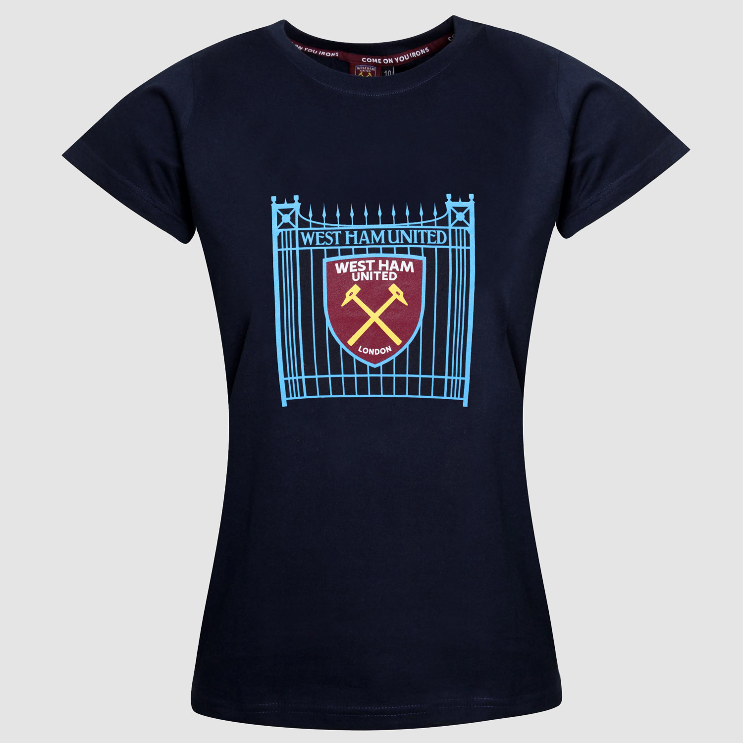 Show your pride for the Hammers in timeless style with the West Ham United Women’s Navy Gates T-Shirt. Crafted from soft, breathable cotton, this fitted tee features the iconic club crest framed by the famous Boleyn Ground gates in striking claret and blue.