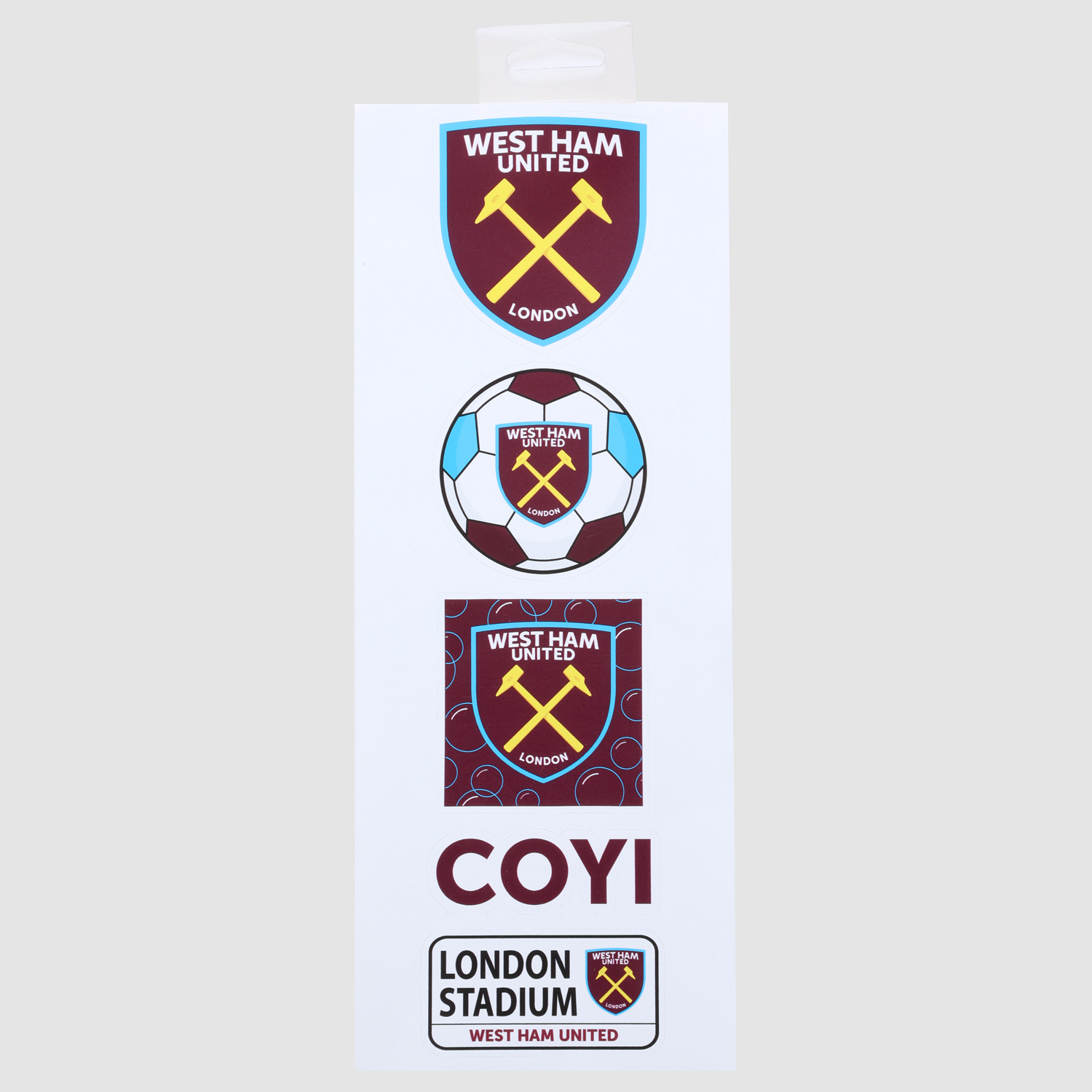 Show your Hammers pride wherever you go with this exclusive 5-pack sticker set, featuring vibrant full-colour designs: